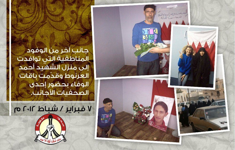 جانب آخر من الوفود المناطقية التي توافدت إلى منزل الشهيد أحمد العرنوط وقدّمت باقات الوفاء بحضور إحدى الصحفيات الأجانب .. 7 فبراير / شباط 2012 م .