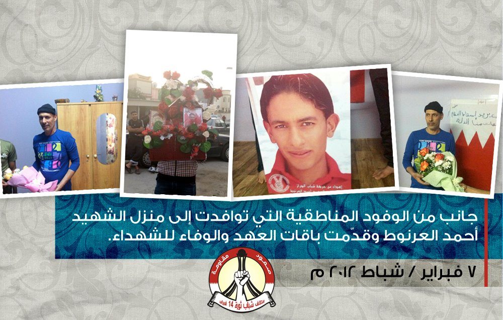 جانب من الوفود المناطقية التي توافدت إلى منزل الشهيد أحمد العرنوط وقدّمت باقات العهد والوفاء للشهداء ..7 فبراير / شباط 2012 م