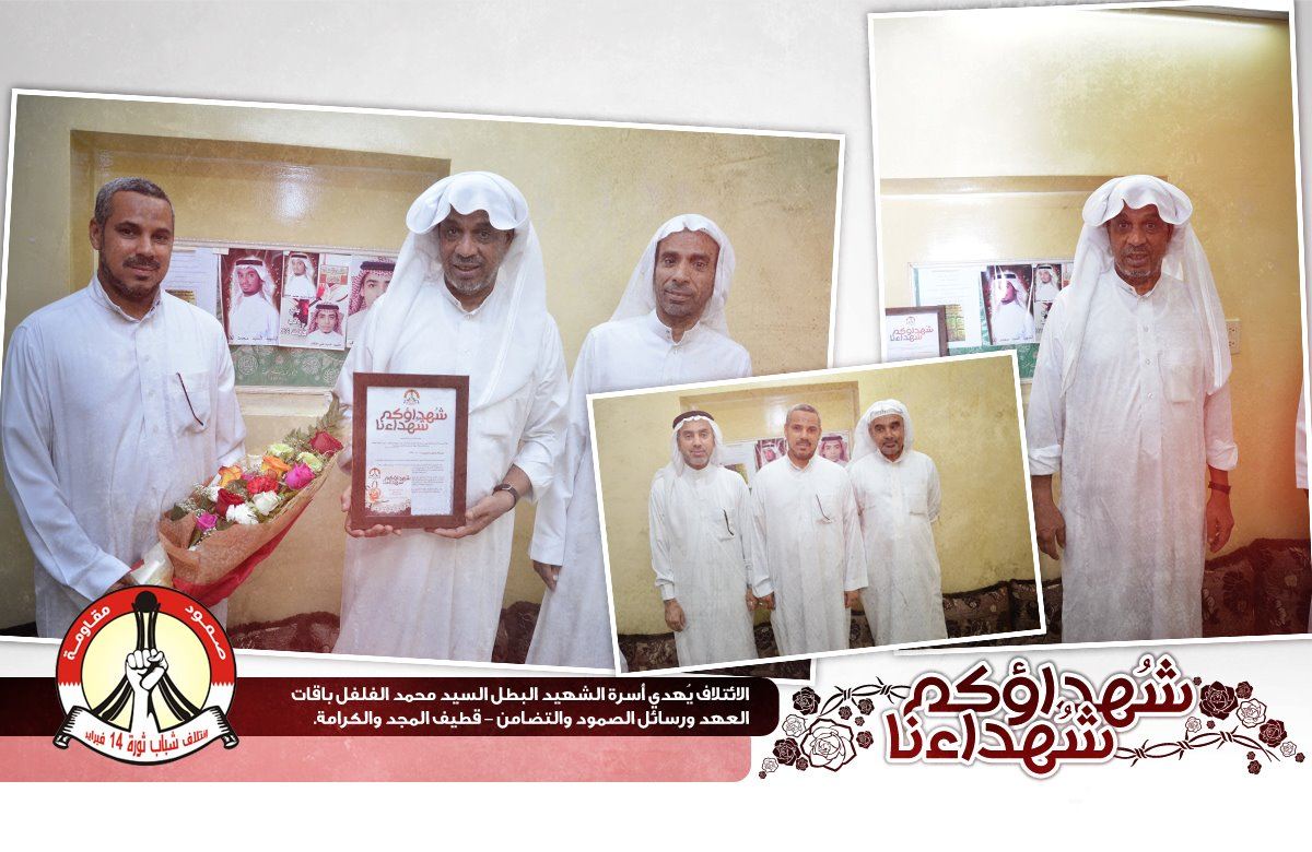الائتلاف يُهدي أسرة الشهيد البطل السيد محمد الفلفل باقات العهد ورسائل الصمود والتضامن – قطيف المجد والكرامة.