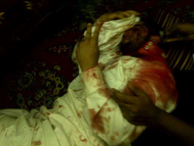 صورة مباشرة: أحد الجرحى الأبطال رغم نزف الدماء وتعذَر العلاج وشدّة الألم يرفع شارة الإنتصار صارخاً صمووود.