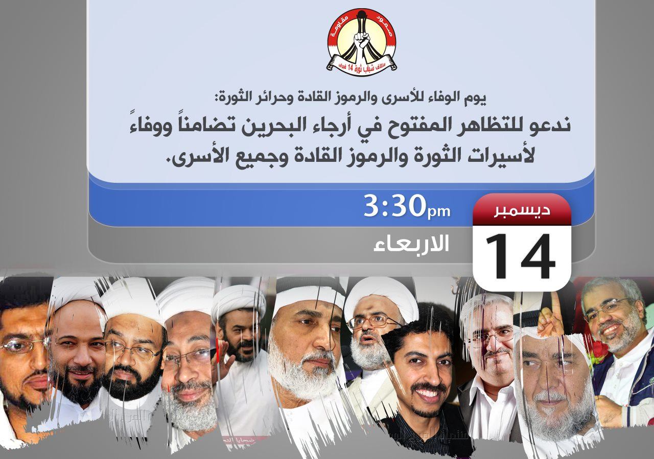 دعوة لانطلاق التظاهرات في أرجاء البلاد في يوم الوفاء للرموز القادة وأسيرات الثورة وجميع أسرى ثورتنا المجيدة.