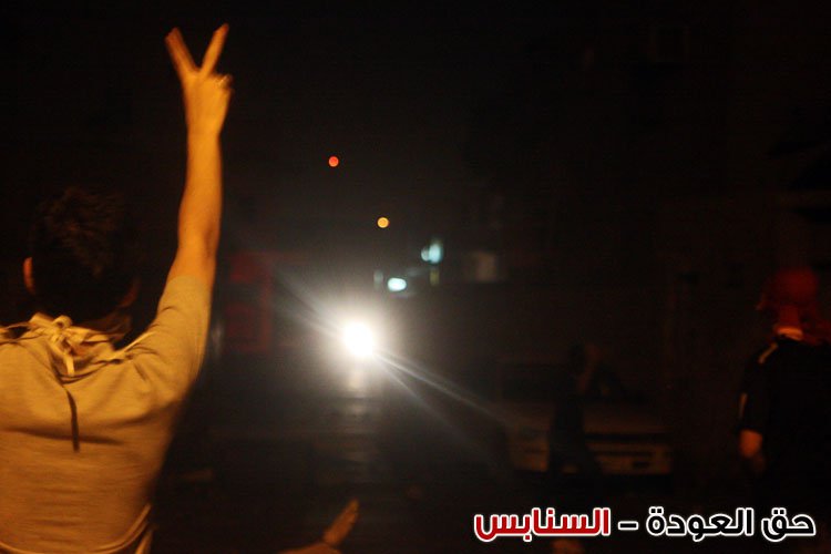 مواطن يرفع شارة الانتصار بوجه القوات الغازية في اعتصام حق العودة لميدان الشهداء في السنابس.
