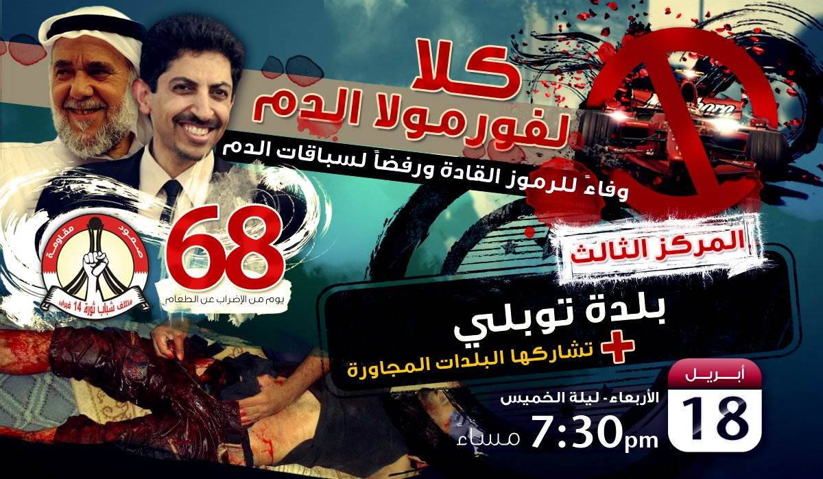مركز رقم 3 (بلدة توبلي المرابطة تشاركها البلدات المجاورة لها)..شارك منْ أجل الخواجة والمشيمع،ورفضاً لسباقات الدم ..ليلة الخميس السابعة والنصف مساءً.
