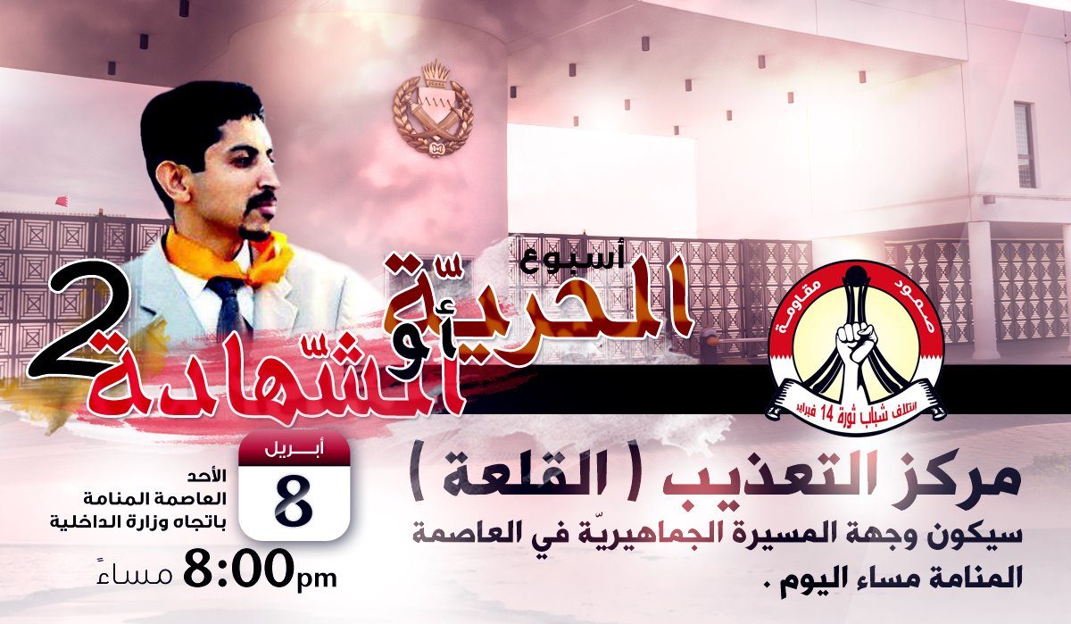مركز التعذيب( القلعة )سيكون وجهة المسيرة الجماهيريّة في العاصمة المنامة مساء اليوم..(8.00 مساءً).