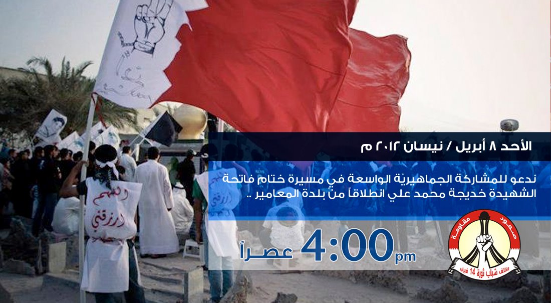 ندعو للمشاركة الجماهيريّة الواسعة في مسيرة ختام فاتحة الشهيدة خديجة محمد..بلدة المعامير(4:00عصراً ) .