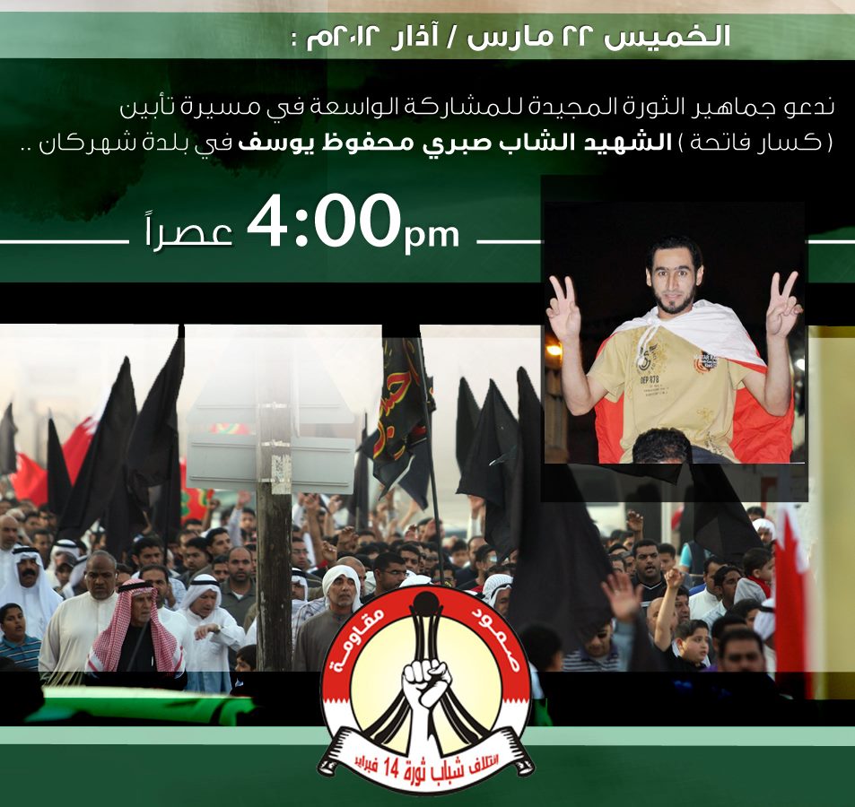 ندعو الجماهير الثوريّة للمشاركة الواسعة في مسيرة خِتام فاتحة الشهيد صبري محفوظ – بلدة شهركان – 4.00 عصراً.