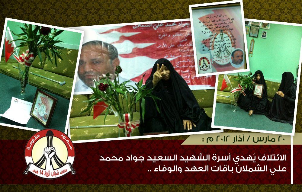 الائتلاف يُهدي أسرة الشهيد السعيد جواد محمد علي الشملان باقات العهد والوفاء .. 20 مارس / آذار 2012م