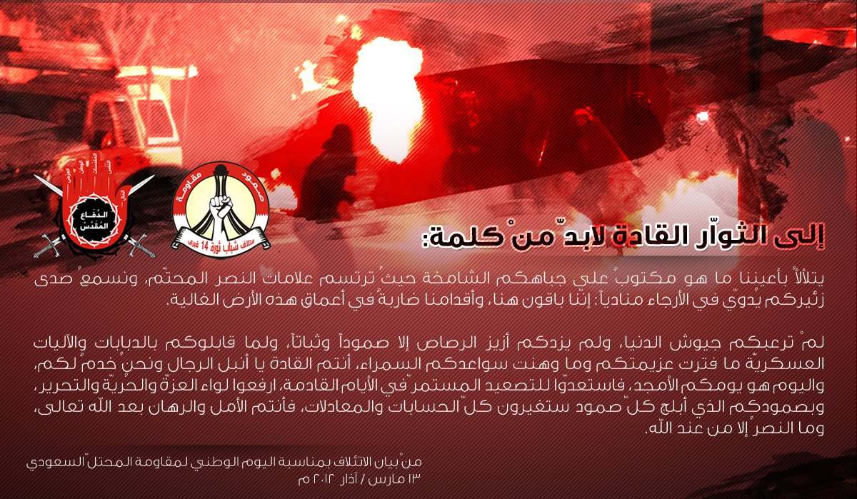 منْ بيان الاتئلاف بمناسبة اليوم الوطني لمقاومة المحتلّ السعودي