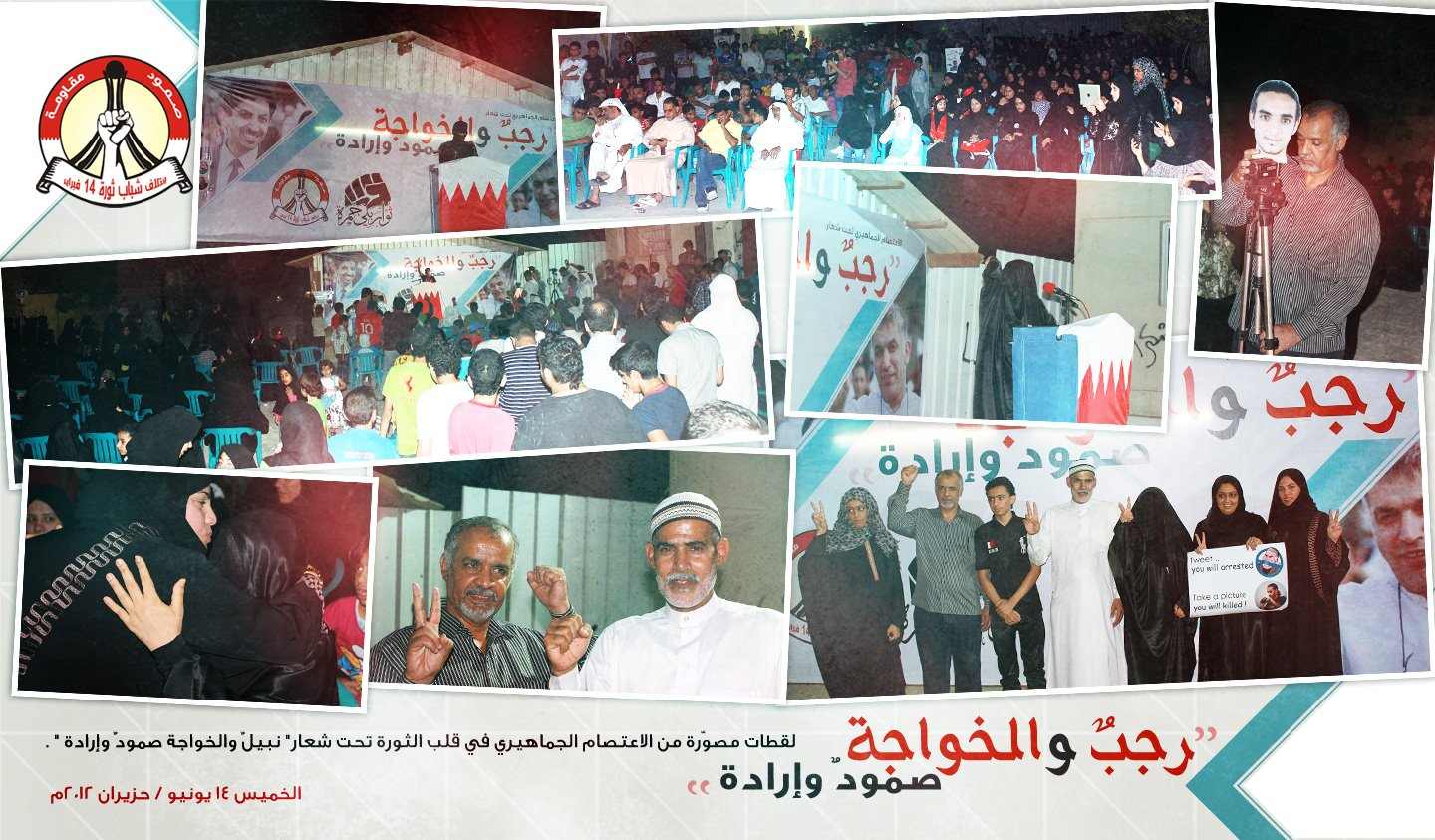لقطات مصوّرة: حضور جماهيري واسع بمشاركة عوائل الشهداء في اعتصام”رجبٌ والخواجة صمودٌ وإرادة”..قلب الثورة بلدة بني جمرة.