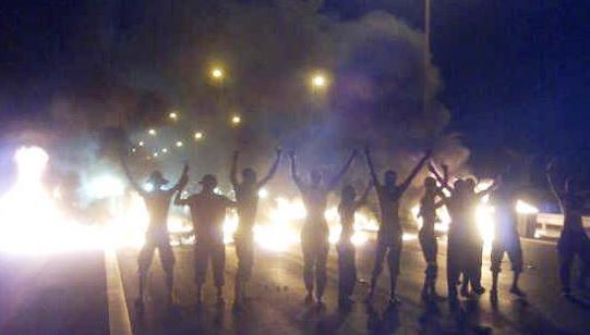 الثوّار يقطعون شارع التحرير الدولي المؤدي نحو العاصمة المنامة أمام عجزٍ واضح للكيان الخليفيّ منْ السيطرة على أهم شوارع البلاد رُغم استنفار مرتزقته.