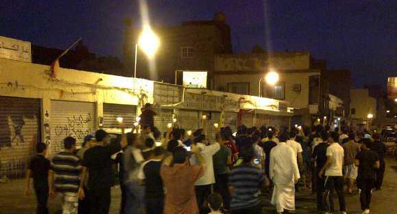 صورة مباشرة: جماهير الشعب الوفيّة لدماء شهدائها تنزل إلى الشوارع معليةً هتاف الله أكبر على منْ طغى وتجبّر، منددةً بمقتل الشهيد الفتى حسام الحداد بدمٍ بارد على يدِ الديكتاتور حمد.