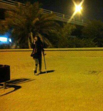 الناشطة الحقوقيّة”زينب الخواجة”كريمة عميد الحقوقيين الأستاذ المغيّب عبدالهادي الخواجة، تعتصم سلمياً وسط دوار القدم وتهتف بصوتٍ عال بحقِّ الشعب في تقرير مصيره.