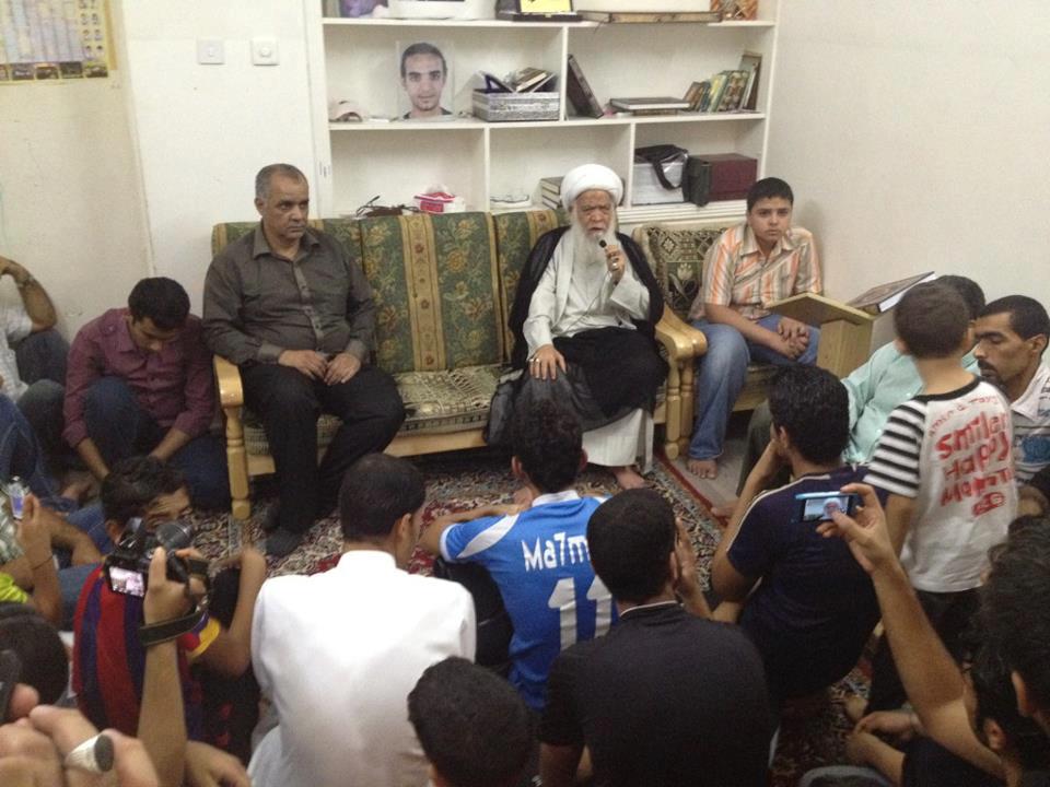 جانب منْ الوقفة التي أُقيمت مساء اليوم في منزل الاعلامي الشهيد البطل أحمد إسماعيل بمشاركة سماحة الشيخ علي بن أحمد الجدحفصي تضامناً مع فخر النساء الأسيرة ” فخرية أحمد”..الحُريّة لأسيرات الثورة.