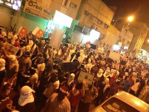 صورة مباشرة: حضور جماهيري حاشد في المسيرة الجماهيريّة” كلنا نمور ” بوسط شارع الثورة في قطيف المجد والكرامة.