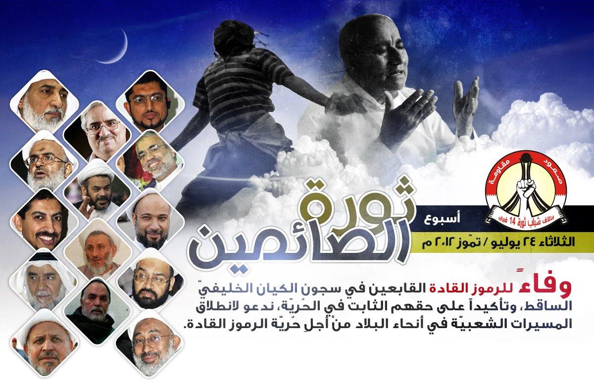 وفاءً للرموز القادة القابعين في سجون الكيان الخليفيّ الساقط، وتأكيداً على حقهم الثابت في الحُريّة، ندعو لانطلاق المسيرات الشعبيّة في أنحاء البلاد منْ أجلِ حُريّة الرموز القادة.