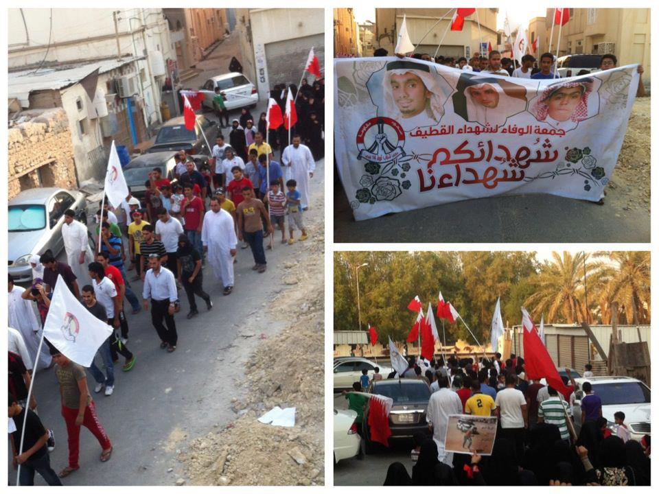 بإرادةٍ صلبة..مسيرات الوفاء لشهداء القطيف ستستمرّ مساء اليوم بشكلٍ أوسع تضامناً مع أحبتنا في قطيف العزّة والكرامة..جُمعة الوفاء لشهداء القطيف.. 20 يوليو/تمّوز 2012 م