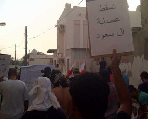 صورة مباشرة: جانب منْ المشاركين في موكب التشييع الرمزي للشهيد البطل عبدالله الأوجامي ببلدة مقابة..تسقط عِصابة آل سعود.