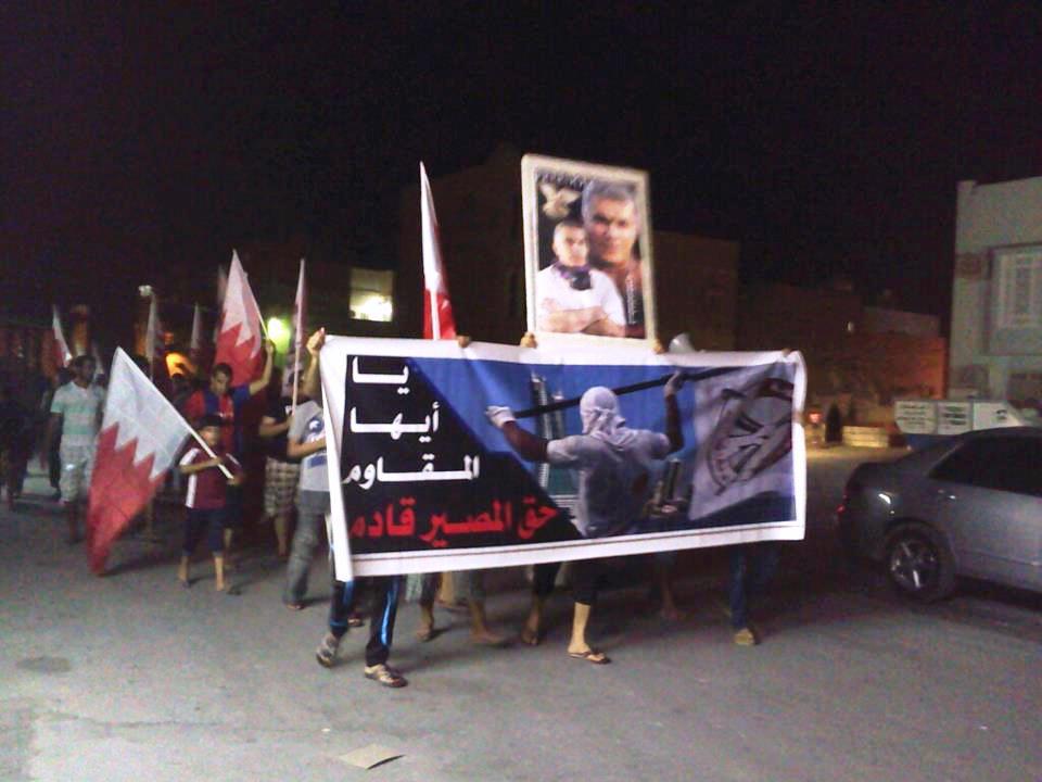 عاصمة الثورة تتظاهر الآن تضامناً مع النبيل رجب وتأكيداً على الاستعداد الشعبي للفعالية الكبرى بالعاصمة المنامة يوم الجمعة القادم تحت شعار”حق تقرير المصير 13 “.
