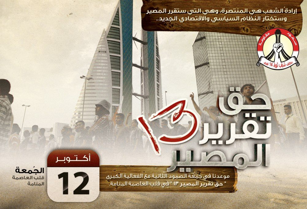 إرادةُ الشعب هي المنتصرة، وهي التي ستقرر المصير وستختار النظام السياسي والاقتصادي الجديد..موعدنا في جمعة الصمود الثانية مع الفعالية الكبرى” حق تقرير المصير 13 ” في قلب العاصمة المنامة.