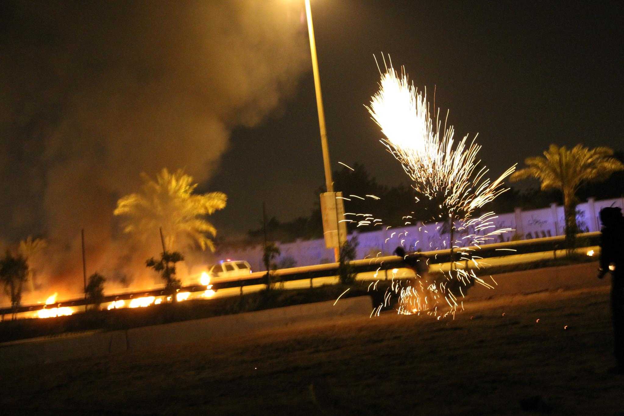 عصابات المرتزقة تعتدي على ثوّارنا الأبطال أثناء قطعهم لشارع 14 فبراير، مما استدعى التصدي لهذا الإعتداء الجبان بوسائل الدفاع المقدّس.