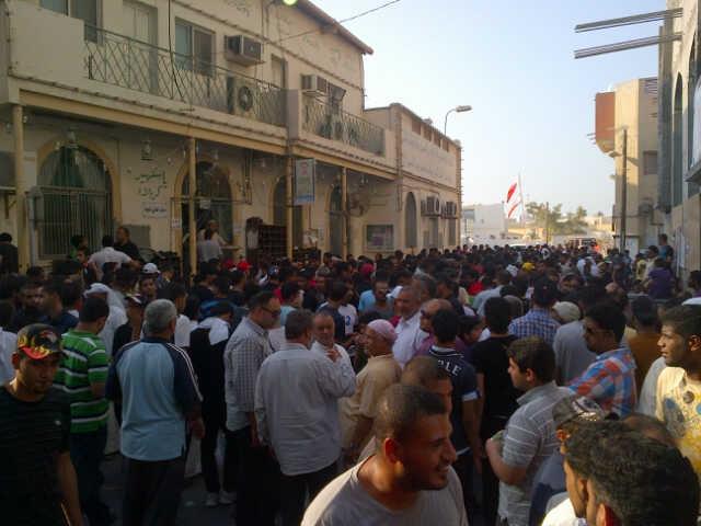 صورة مباشرة: الجماهير تحتشد في بلدة الديه المرابطة استعداداً للمشاركة بمراسم خِتام فاتحة الشهيد البطل محمد المشيمع.