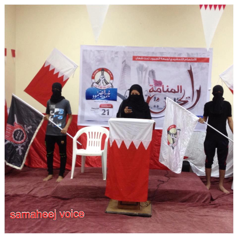 حرائر سماهيج يؤكدن خِلال كلمتهن في الاعتصام التحشيدي”رايحين المنامة” على المشاركة الواسعة في جمعة الصمود بالعاصمة المنامة.
