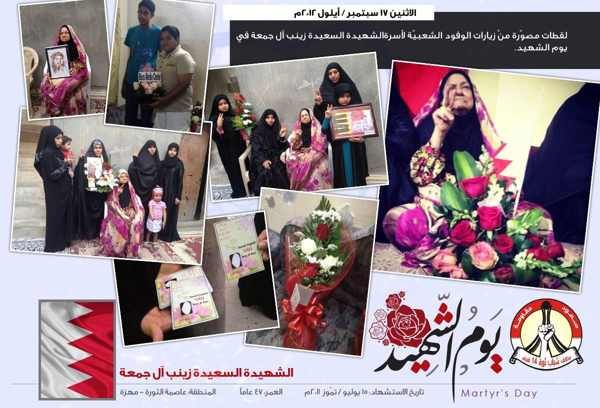 لقطات مصوّرة منْ زيارات الوفود الشعبيّة لأسرةالشهيدة السعيدة زينب آل جمعة في يوم الشهيد.