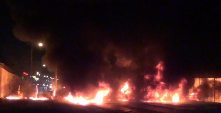 نيران الغضب وهي تستعر في شارع الخدمات مساء اليوم وفاءً للشهداء الأبرار في يوم الشهيد.